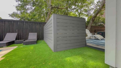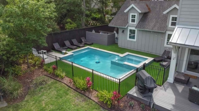 Now, let’s step into the backyard, where the real transformation unfolds. The once-traditional landscape surrounding the pool has been replaced with a low-maintenance haven. Artificial turf provides a durable, comfortable surface perfect for poolside enjoyment.