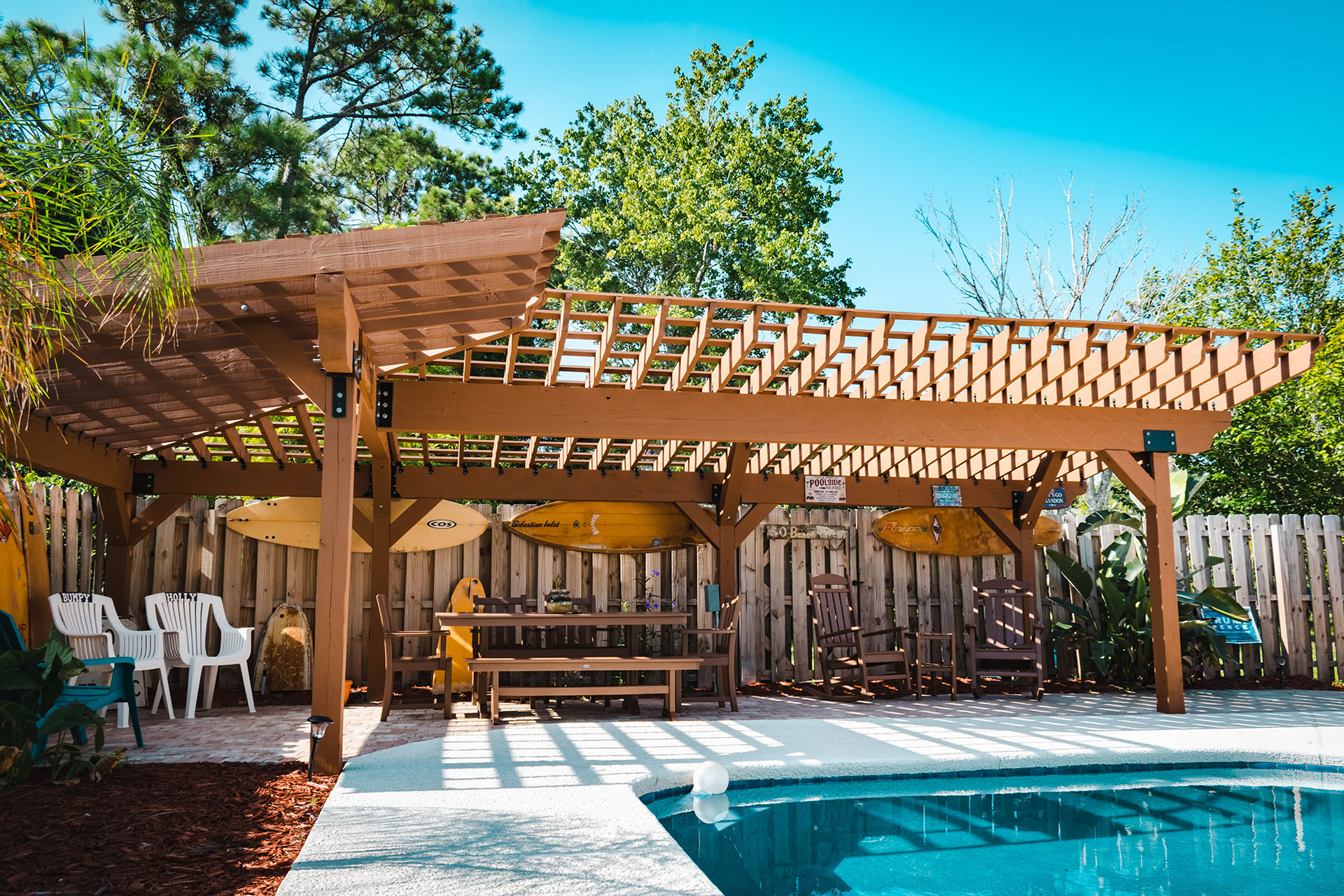 Stay in comfortable shade while taking in the beautiful tropical landscape in your backyard. Pergolas are an excellent addition to your outdoor living space, helping you stay cooler under the intense Florida sun.